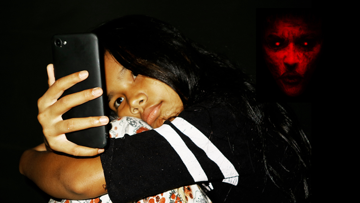 It starts off perfectly innocent, showing a girl and her friend laughing together in a bedroom. In fact, the women who filmed it didn't notice anything strange about the video until they sent it to a friend and that girl pointed out what looks like a burnt, red-faced demon behind them.
